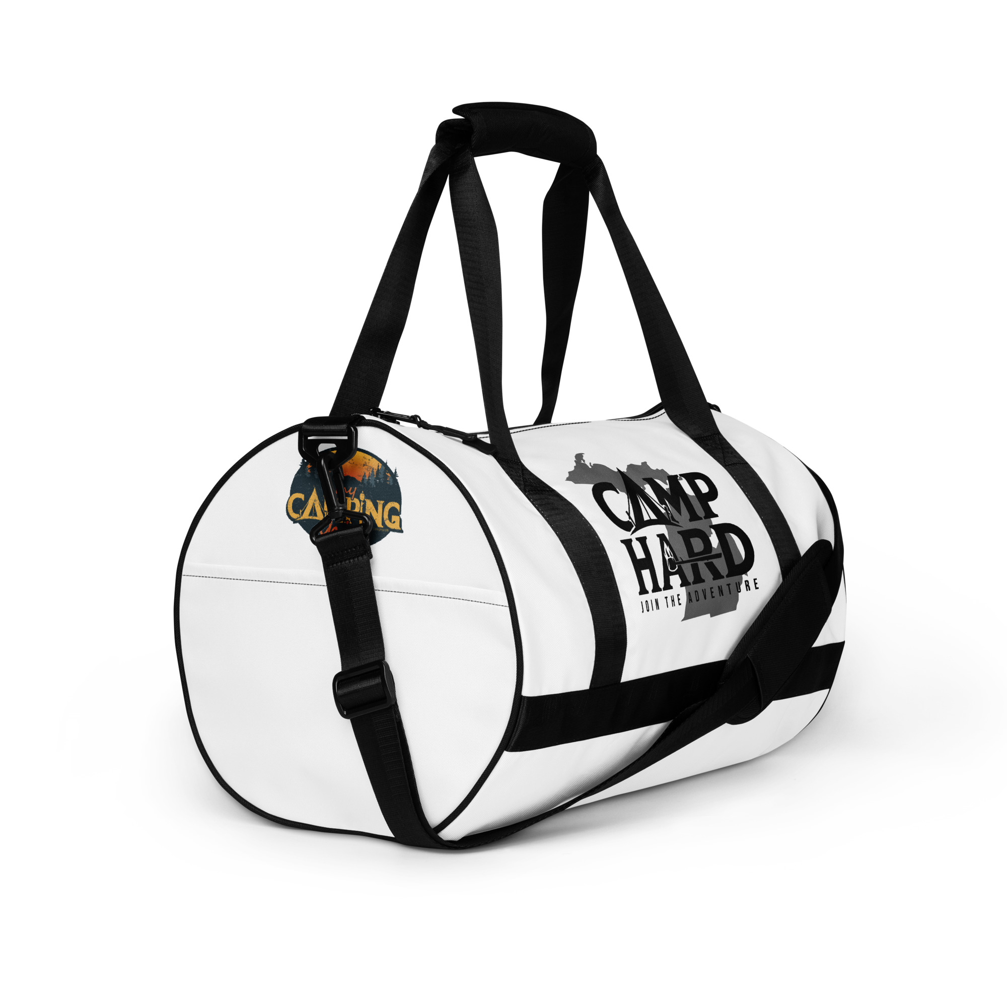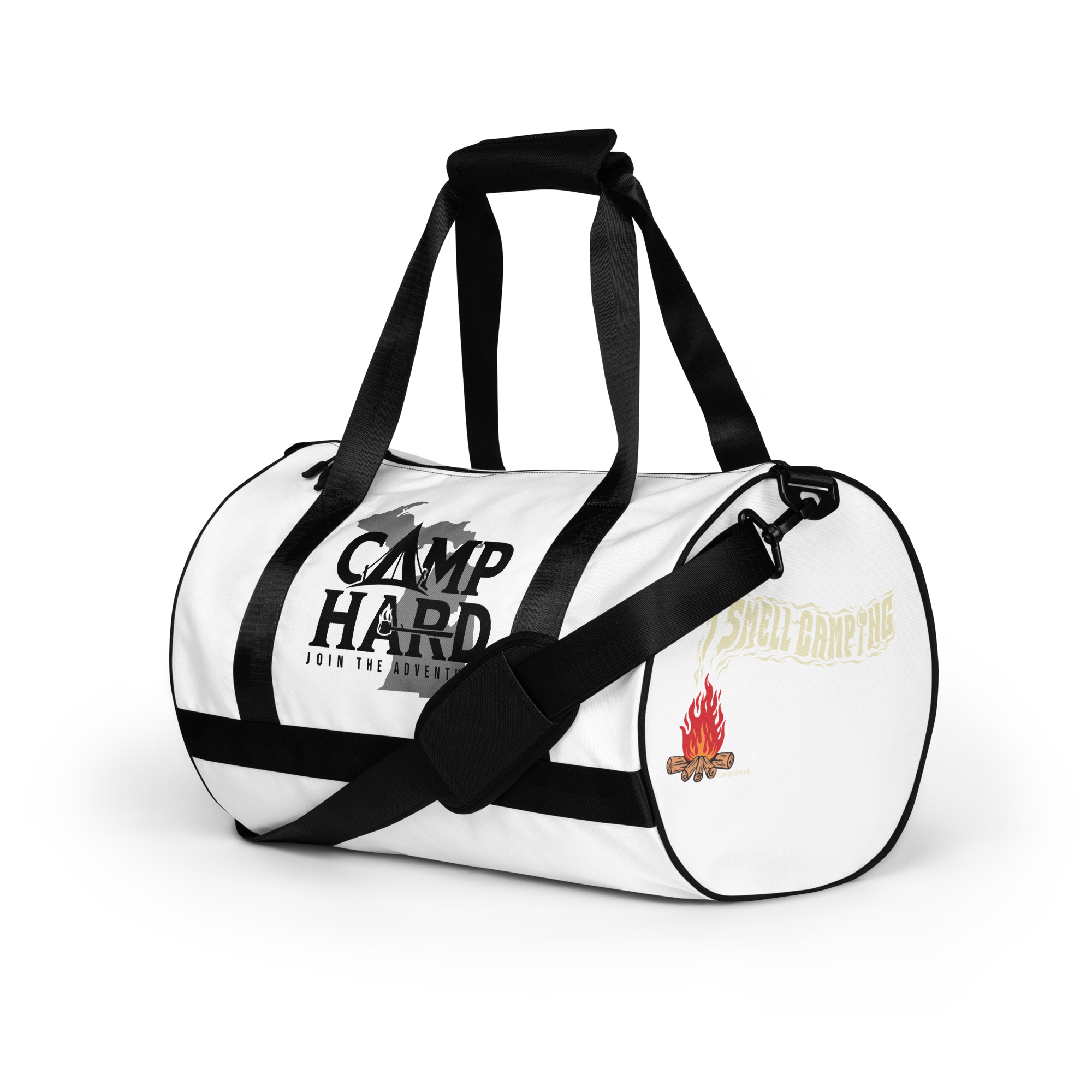 Ready to get your fitness on? Add some punch to pumping iron with this all-over print gym bag. Made from 100% polyester and sturdy, water-resistant fabric, this bag is fun meets function. And it’s got pockets!